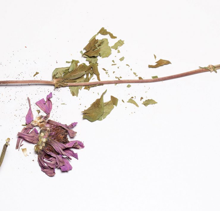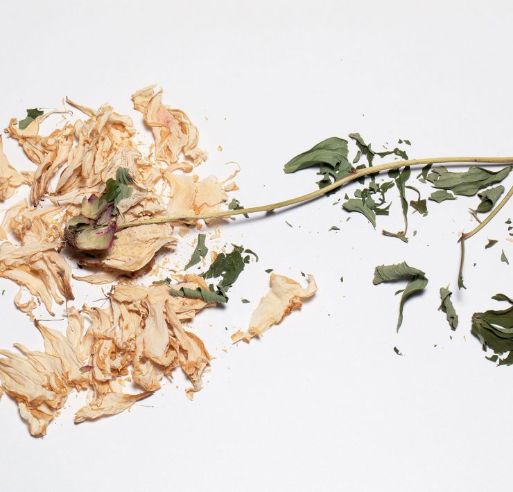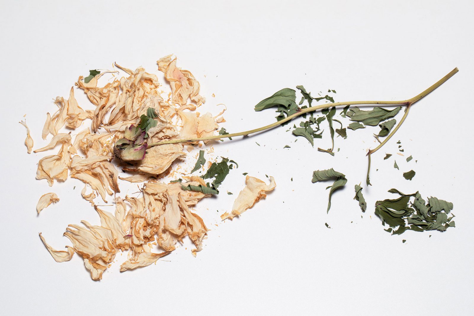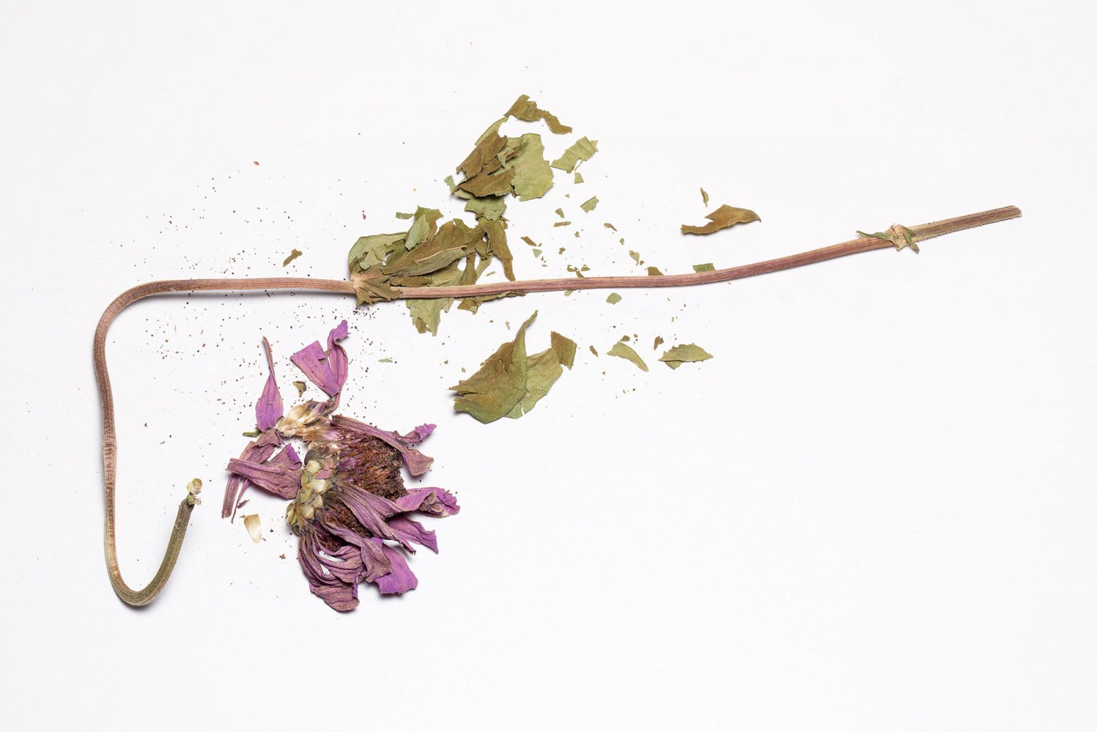 But flowers were presenting themselves to me. I began to work in this environment. There was a process that started with frustration. I destroyed one of the flowers because it was dry. And I followed the path thinking, this is cool. I experimented with flowers being destroyed, and I created a series titled Destruction of Delicate Things.