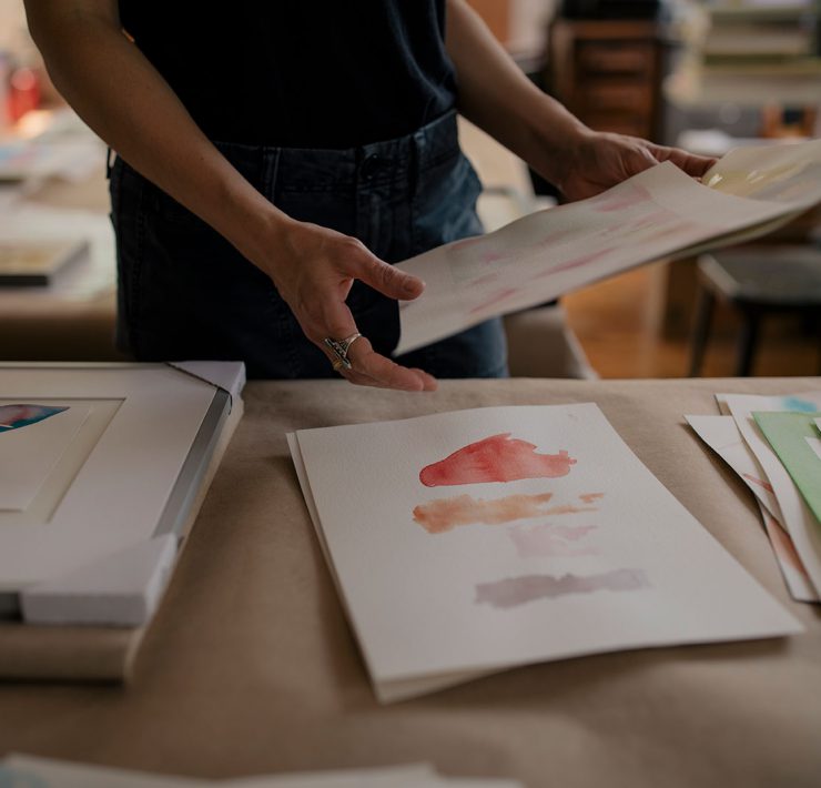 Sometimes I feel focused and confident, and sometimes I get a little lost trying something new. Even if I’m not happy with it, I keep my hands in it. I’ll do works that I know are throwaways, and I don’t expect them to be great. Or experiments with color and surface that maybe I’ll never use. Some works I make intending to collage them into other works. Some of them I make to enjoy the process of painting or to celebrate an incredible pigment.