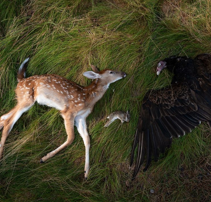 If you look at my project Hit and Run, people are like, “This fawn’s been left alone, we’re going to go take it and bring it to this nonprofit,” but the mom’s foraging and she leaves her fawn purposely in the woods because it’s got spots on it, which is supposed to mimic deckled sunlight. She knows exactly where she left it and she will come back for it. People are well-meaning but they don’t know, or there are hunters here, or they get hit by cars.