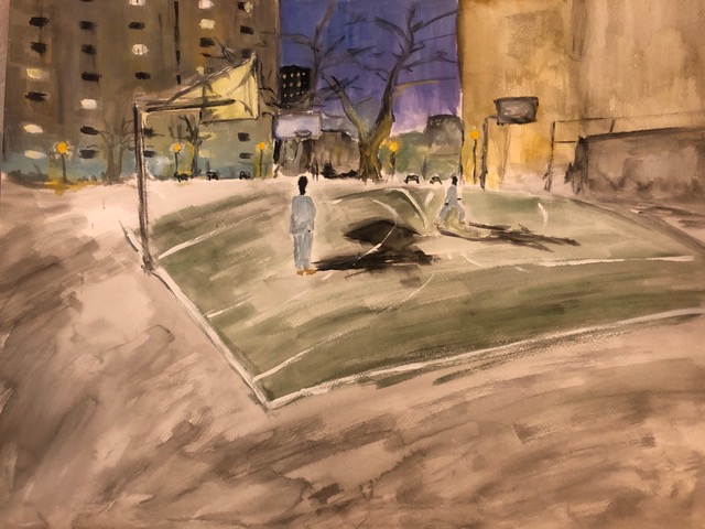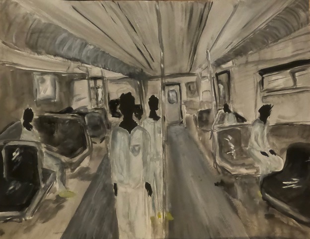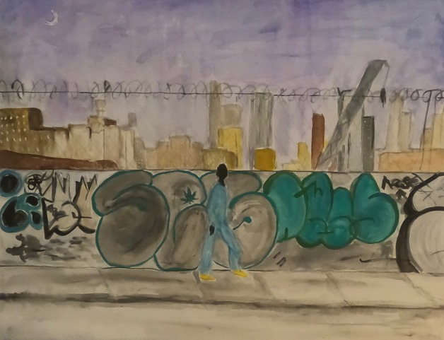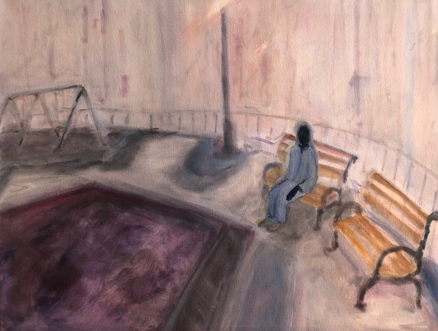 Since then, Rachel and I have had many conversations about various projects, but one that stands out is her recent set of paintings, “Blue Pajamas.” I sat down with her to talk about the inspiration behind it and how it relates to her experience as a dance movement therapist at the psychiatric ward of NYC Health + Hospitals in Brooklyn. “Dance and creative art therapy is another form of psychotherapy that uses movement, art, and music to help people express, uncover and discover themselves,” Rachel said in her interview.